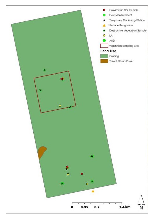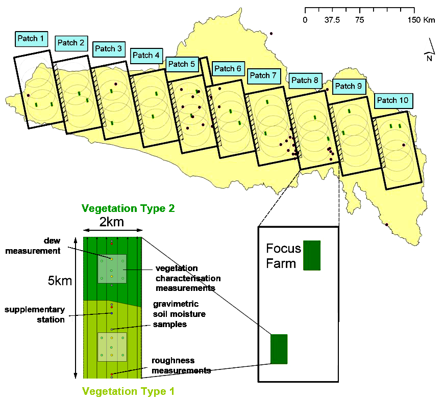 Google Earth (KML file) Workplan SMOS AMSR-E WindSat ASCAT PALSAR ASAR MODIS MTSAT-1R ASTER Landsat CHRIS AVNIR-2 PLMR data Thermal Infrared data Multi-Spectral data Monitoring stations Soil moisture sampling Vegetation sampling Roughness sampling Campaign shapefiles DEM Land use Climate data Rainfall data Soil classification Soil water capacity Soil texture analysis AACES homepage Moisturemap homepage  |