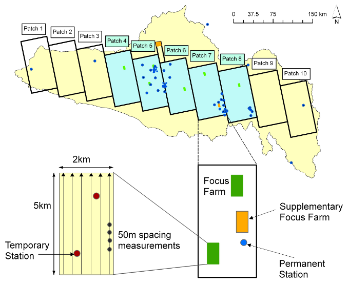 Schematic of the temporary monitoring station network