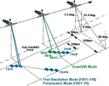 The PALSAR is an active microwave sensor aboard the Advance Land Observing Satellite (ALOS). The sensor operates at L-band with HH and VV polarisation (HV and VH polarisations are optional). The sensor is beam steerable in elevation and the ScanSAR mode allows obtaining a wider swath than conventional SARs. ALOS was launched in 2004 into a sun-synchronous orbit at the altitude of 700km, providing a spatial resolution of 20m for the fine resolution mode (swath width of 70km) and 100m for the ScanSAR mode (swath width of 360km). The repeat cycle is 46 days and the local time at descending node is about 10:30am. PALSAR data can be downloaded from ERSDAC.